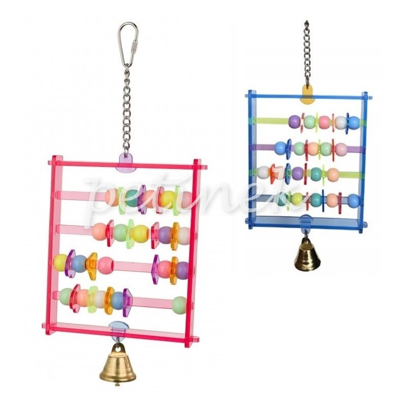 Plastikowe liczydło z metalowym dzwonkiem dzięki przemyślanej konstrukcji, liczydło przyciąga uwagę ptaków i zachęca je do interakcji, jednocześnie wspierając rozwój ich zdolności poznawczych.