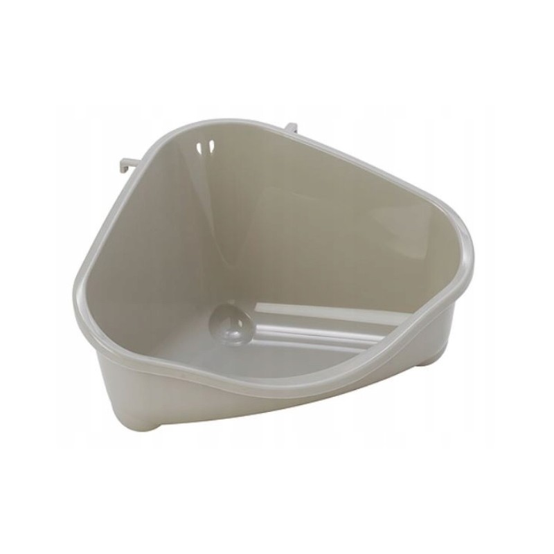 Stawiana w rogu kuweta zostawia więcej miejsca w klatce dla zwierzątka oraz pomaga w utrzymaniu higieny w klatce.