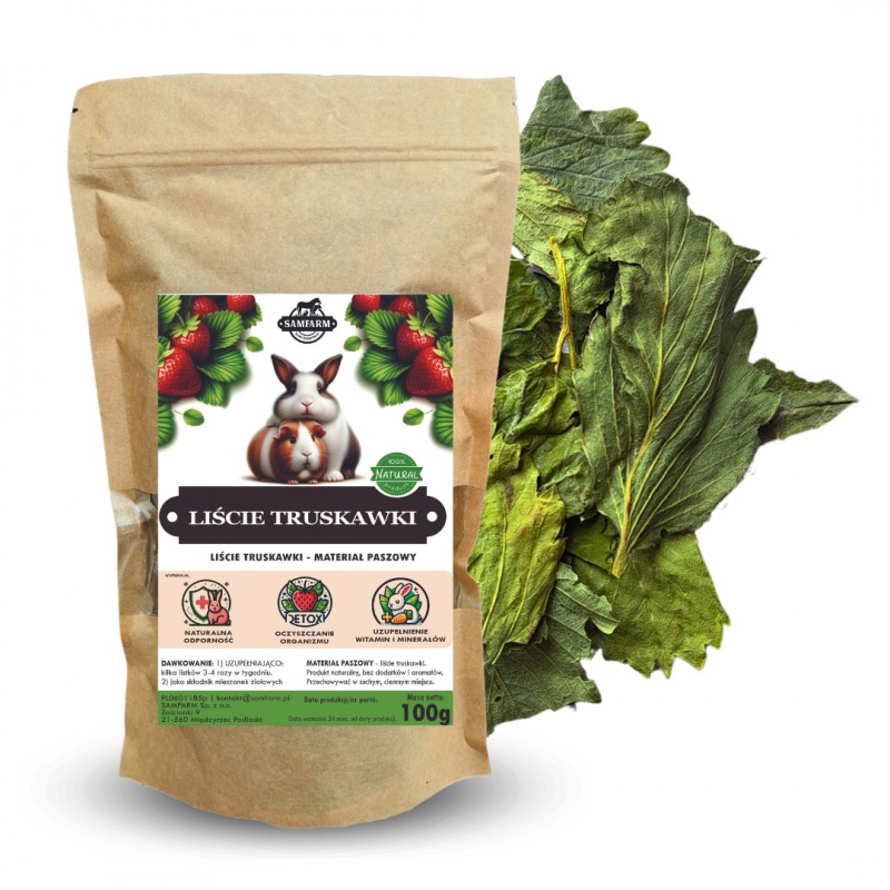 Skład: suszone liście truskawki- materiał paszowy.