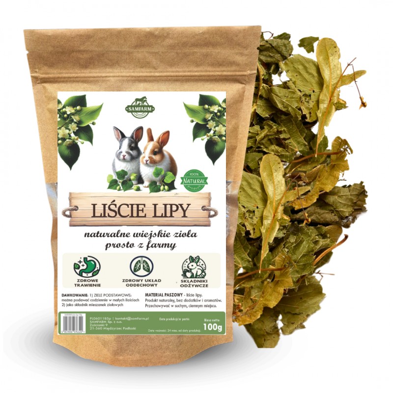 Samfarm LIŚCIE LIPY Z KWIATEM dla Królików i Gryzoni 100g