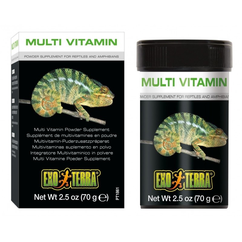 Większość gadów i płazów trzymanych w niewoli nie jest w stanie uzyskać wszystkich niezbędnych witamin i minerałów z diety. Exo Terra Multiwitamina w proszku została opracowana, aby uzupełnić ich codzienną dietę, dostarczając precyzyjnie określone poziomy witamin, aminokwasów i pierwiastków śladowych. Suplement ten wspiera produkcję energii, wzrost, utrzymanie, reprodukcję i wiele innych funkcji organizmu.